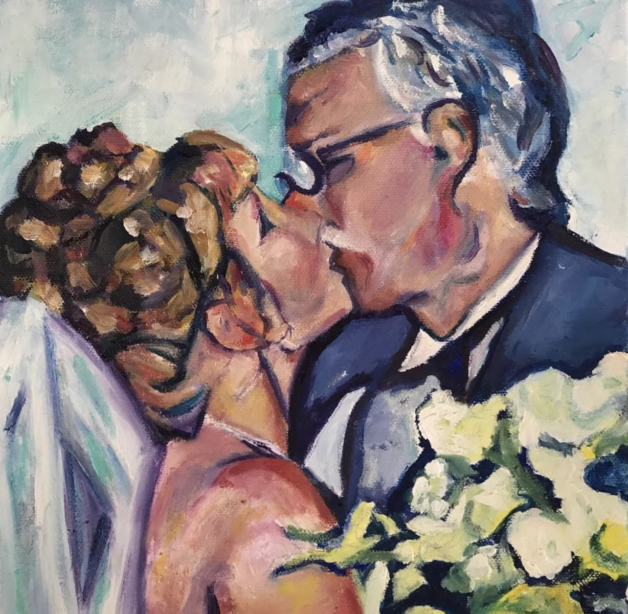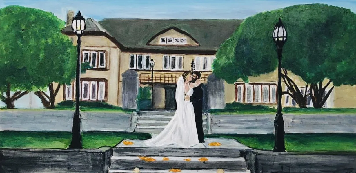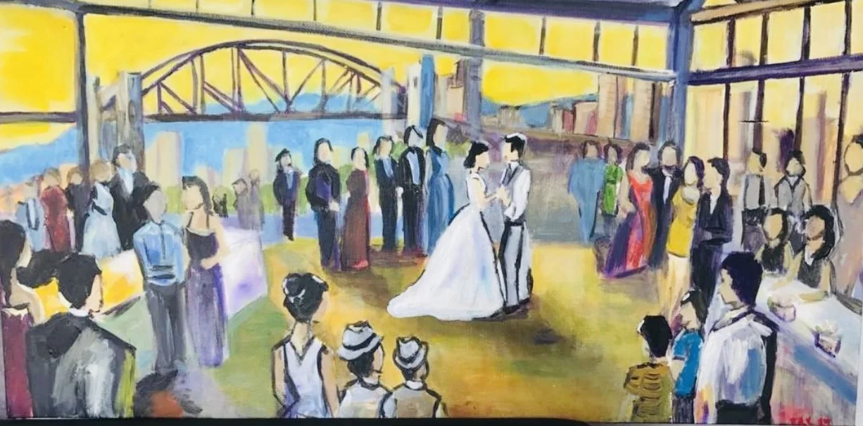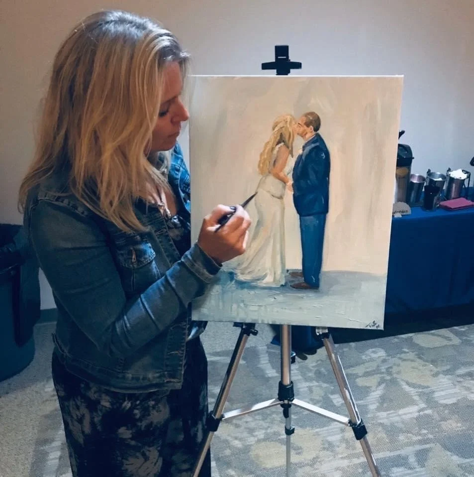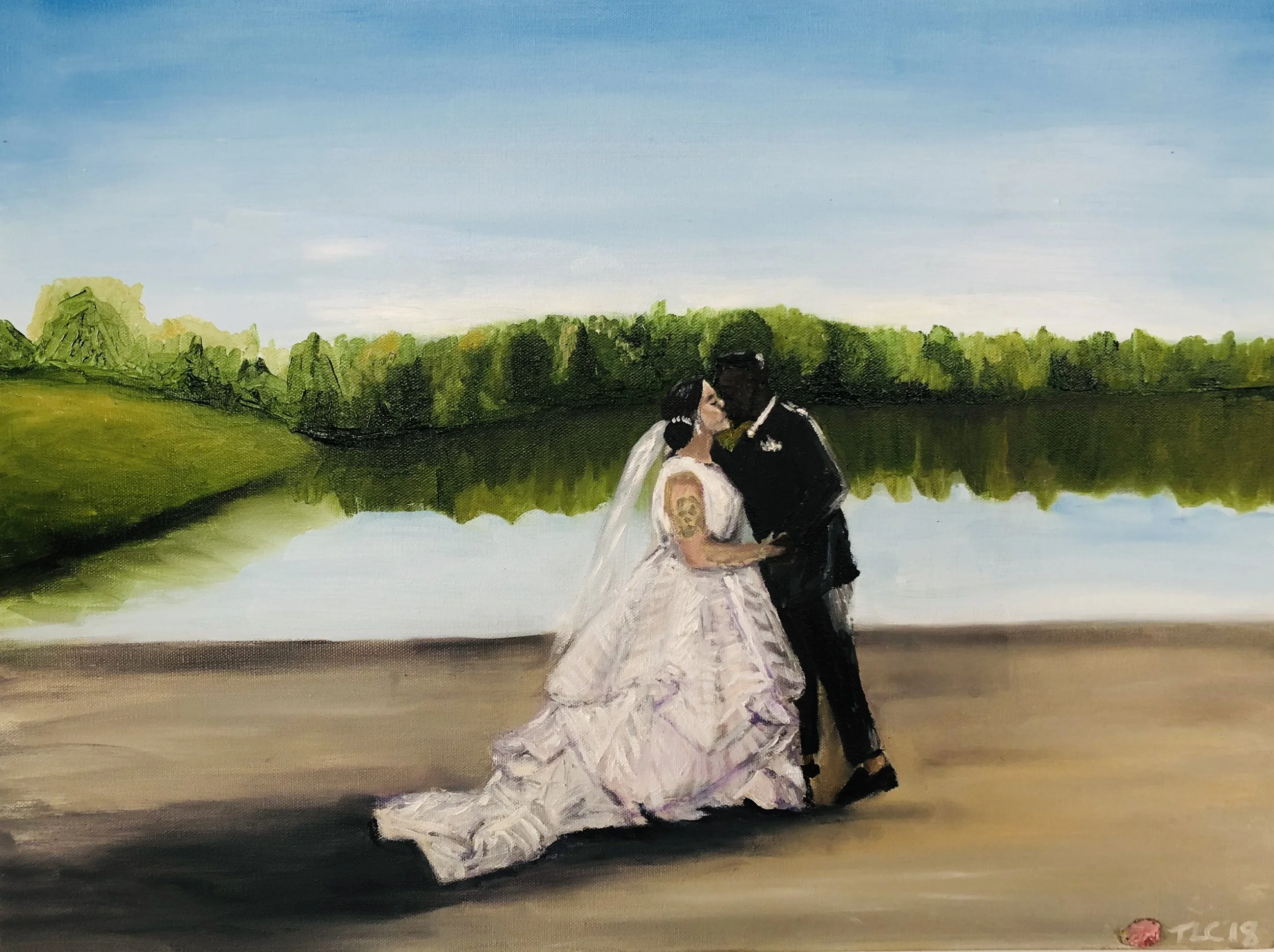 Tricia creates heirloom paintings at the wedding or reception. She captures everything that’s important to you on canvas as you and your guests watch. You can add pets and loved ones who have passed on to the painting as well.